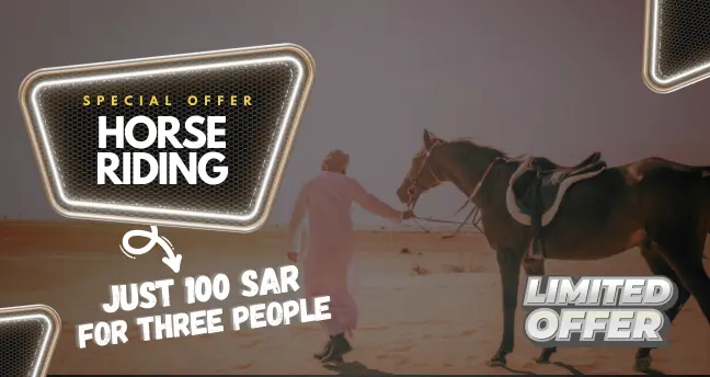 Adventure is better when shared! For a limited time, Nomad Adventure is opening its doors for friends and families to experience the majesty of horse riding at an unprecedented price. Whether it’s your first time on a horse or you’re a seasoned rider, enjoy a guided session in the serene desert of Madinah with your favorite people by your side.